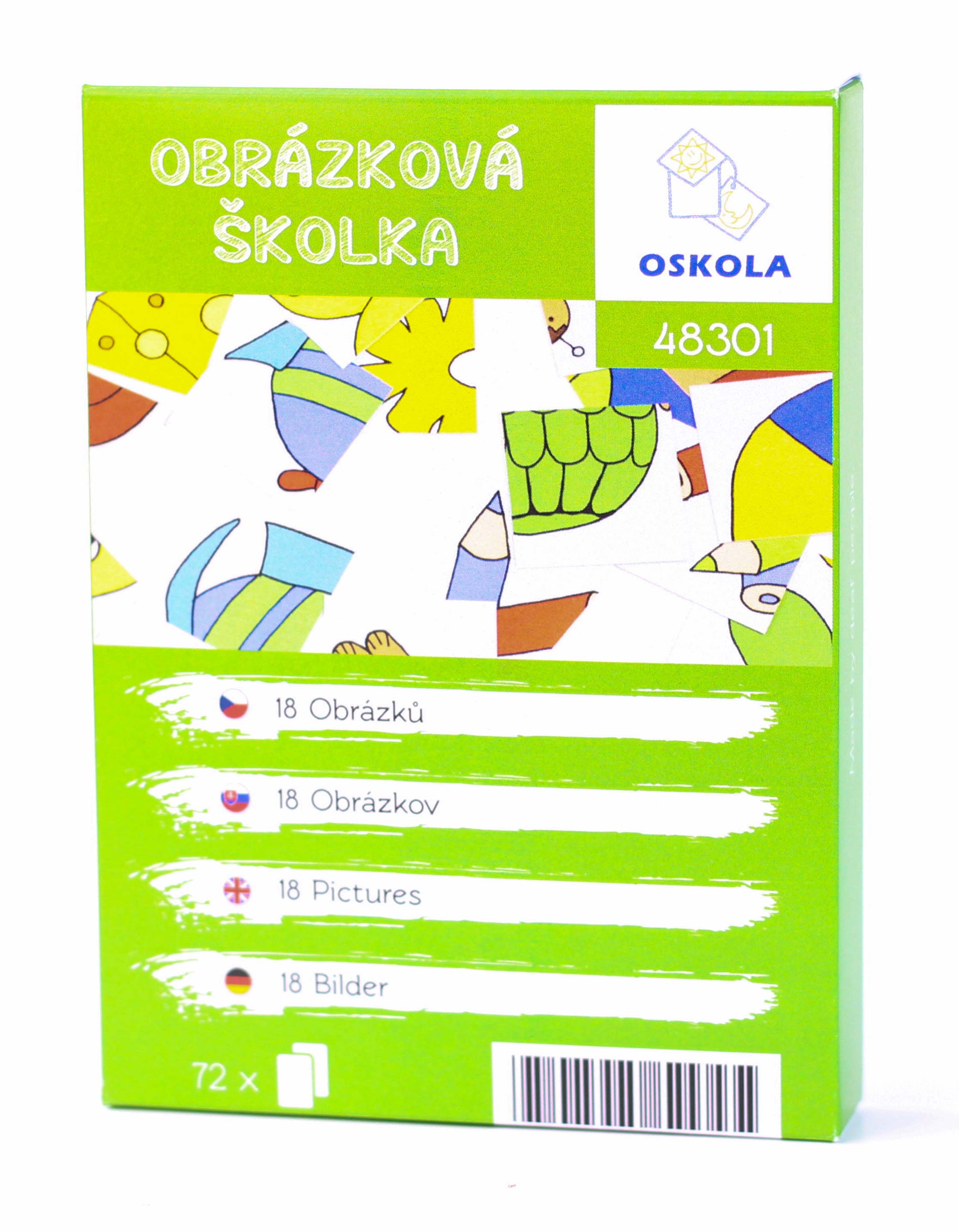 Skládačka obsahuje osmnáct obrázků, každý ze čtyř dílků, celkem 72 dílků. Rozměr kartiček je 6x6 cm.